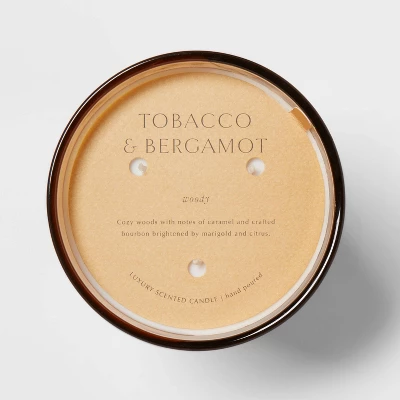 Colored Vase Glass With Dustcover Tobacco And Bergamot Candle Yellow – Threshold™