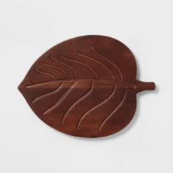 Wooden Oak Leaf Shape Serving Board With Handle Dark Brown – Threshold™