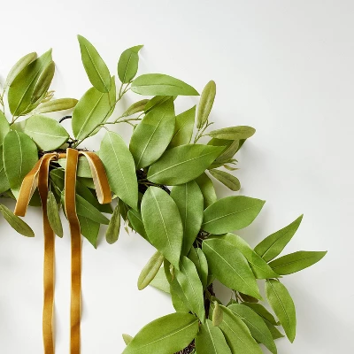 Oversized Fall Leaf Wreath With Velvet Ribbon Green – Threshold™ Designed With Studio McGee
